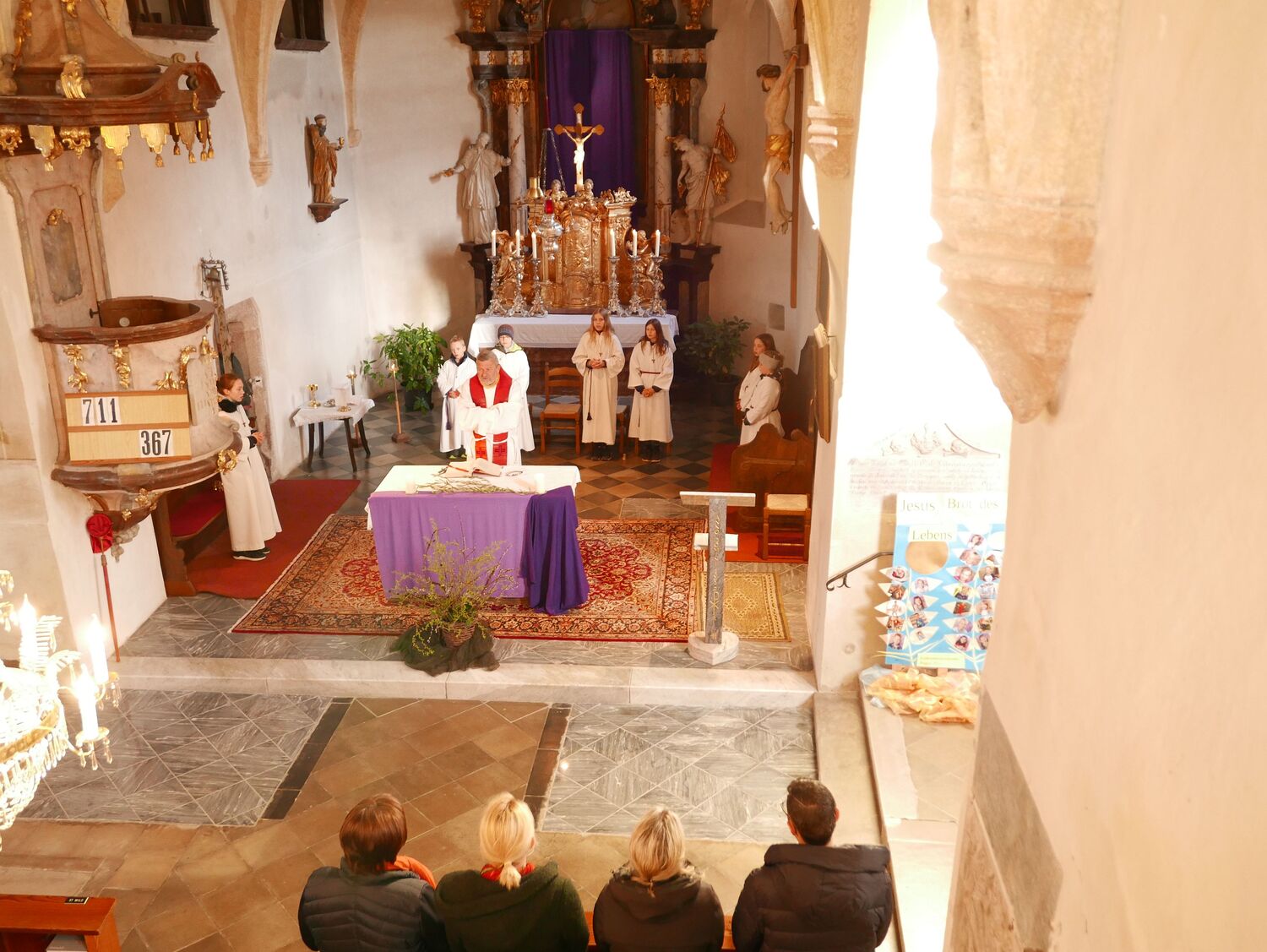 Die Kirche war am Vortag von Fam. Helm und Helfenden, bei froher Atmosphäre geputzt worden. Zuvor schon hatte die Familie allein sich um Kirche und Messnerhaus gekümmert. - Danke! So soll das kommende Osterfest im neuen Glanz erstrahlen können und den Menschen zum Fest und in der Zeit danach mehr Frieden bringen.