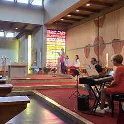 Gesegnet und gestärkt konnten die Gottesdienstbesucher:innen das neue Schul- und Arbeitsjahr beginnen. Alle Kindergarten-, Schultaschen, Unirucksäcke, Laptoptaschen...und Koffer wurden mit ihren Besitzer:innen mit dem Segen Gottes und dem Wissen "Ich bin nicht allein" begleitet. Als Erinnerung daran wurden kleine Segens- und Stärkungssymbole verteilt. Tina Schörgi lud alle ein wieder mehr zu segnen, was jede und jeder darf, und den Mitmenschen Gutes zu wünschen: durch ein Kreuz auf die Stirn beim Gute Nacht sagen, beim Anschneiden eines Laib Brotes, beim Abschied mit Weihwasser.... Alle Kinder erhielten kleine Weihwasserfläschchen und die Erwachsenen die Erinnerung, dass wir "Gott befohlen" sagen, wenn wir "tschüss" sagen, das vom französischen a dieu kommt oder "God be with you" beim Gruß "bye, bye". Ein gemischter Chor hat die Feier wunderschön musikalisch gestaltet.