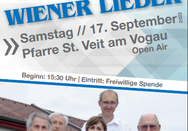 Schlager & Wiener Lieder im Kultursaal St. Veit (wetterbedingt!) mehr: Schlager & Wiener Lieder im Kultursaal St. Veit (wetterbedingt!)
