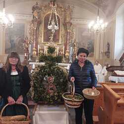 Die heilige Messe mit Pater Engelbert und Franz Ließ wurde in der von Helene Berger schön geschmückten Kirche gefeiert und von der Musikkapelle musikalisch umrahmt.